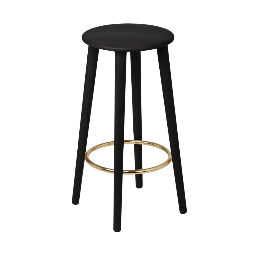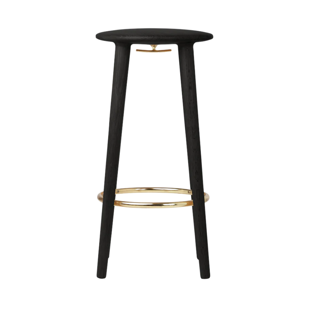 Umage The Socialite Counterstol i sort eg er et markant og elegant valg til det moderne hjem. Det mørke træ udstråler eksklusivitet og ro, og står i smuk kontrast til de gyldne detaljer i aluminium med messingfinish.