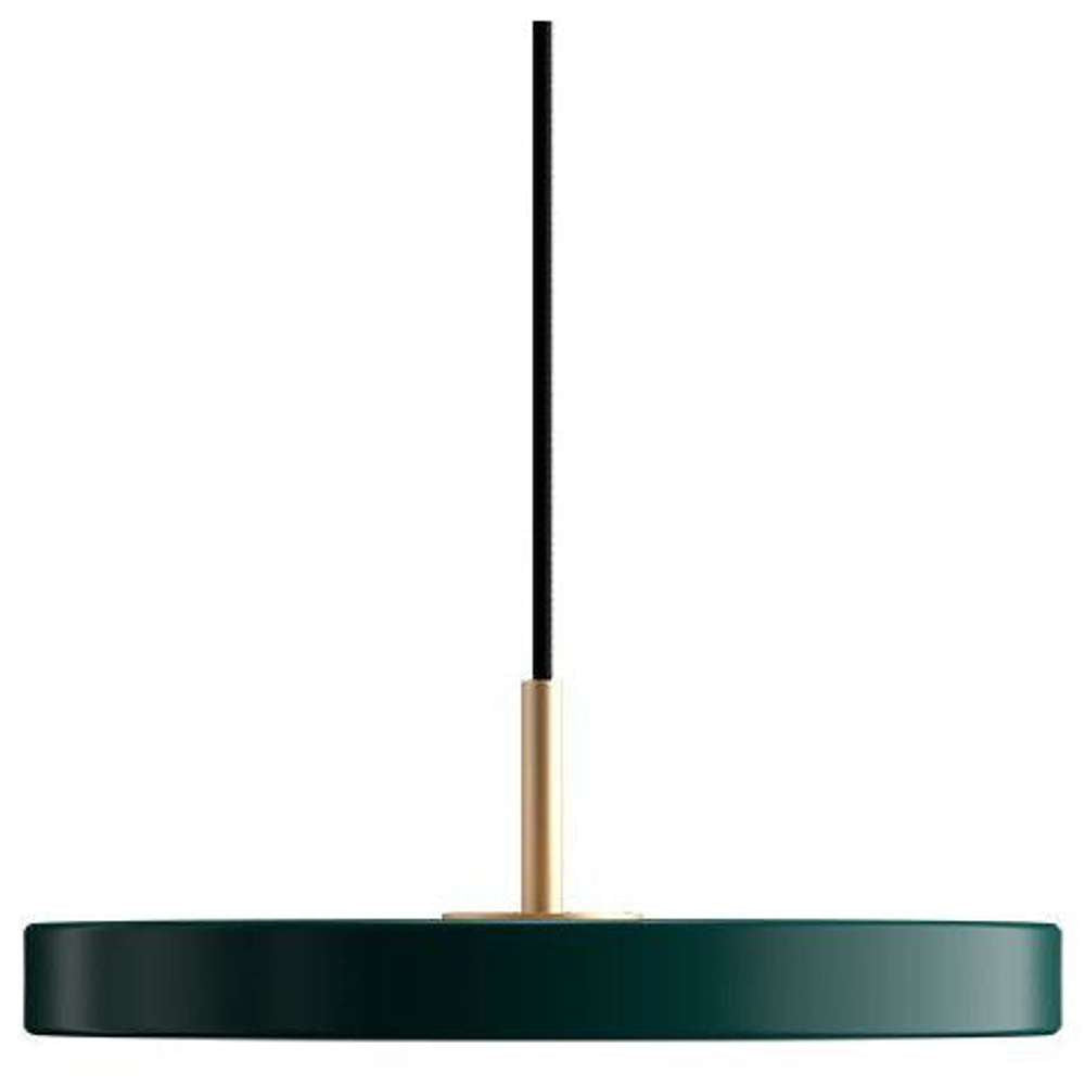 Umage Asteria Mini Forest Green Ø 31 x 10,5 cm pendel er en stilren lampe, der kombinerer skandinavisk minimalisme med funktionel teknologi. Den dybe grønne farve tilfører et naturligt og roligt udtryk til rummet, mens det slanke design passer perfekt over spisebordet, i køkkenet eller på kontoret.