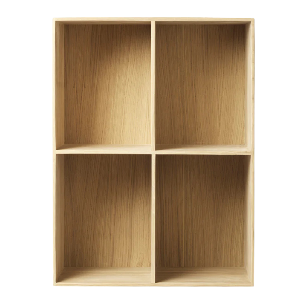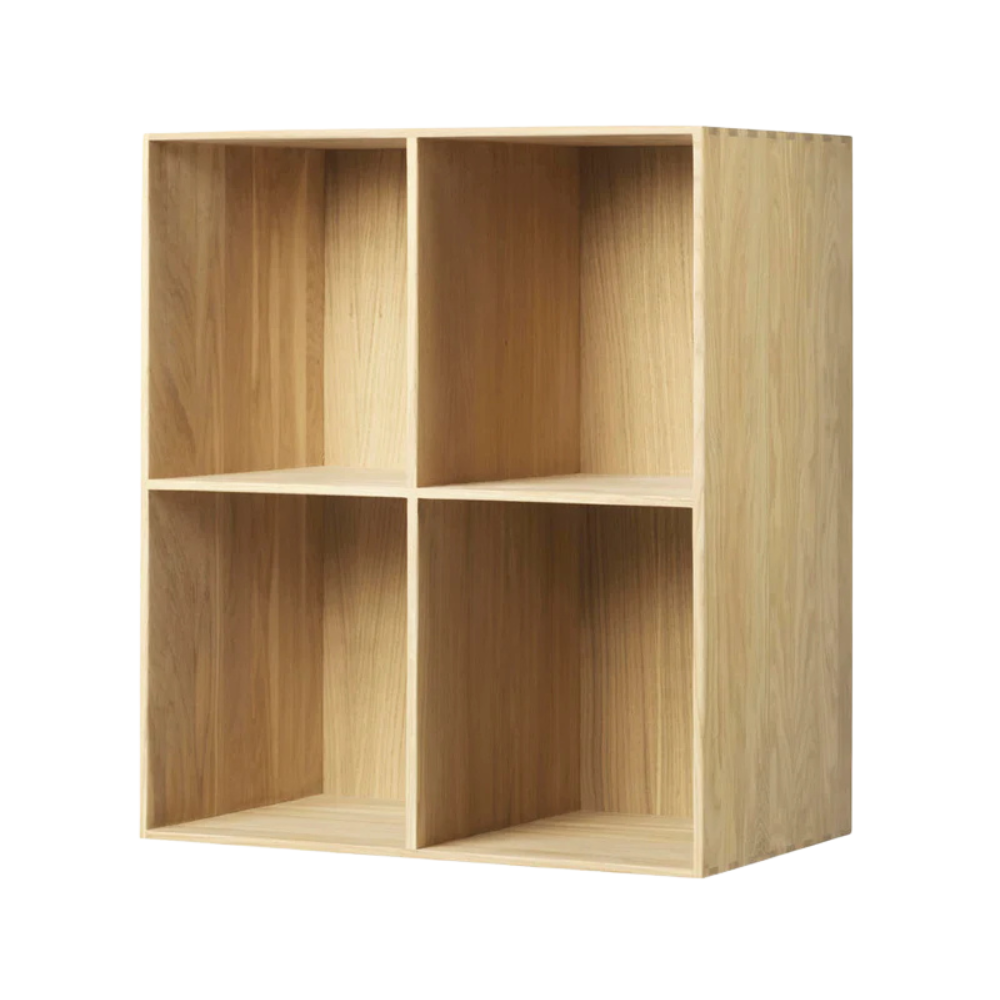 Med målene H54 x B72 x D32 cm tilbyder bogkassen fleksible opbevaringsmuligheder. Den kan anvendes som en selvstændig enhed, stables for at skabe en større reol eller monteres på væggen for et let og luftigt udtryk.