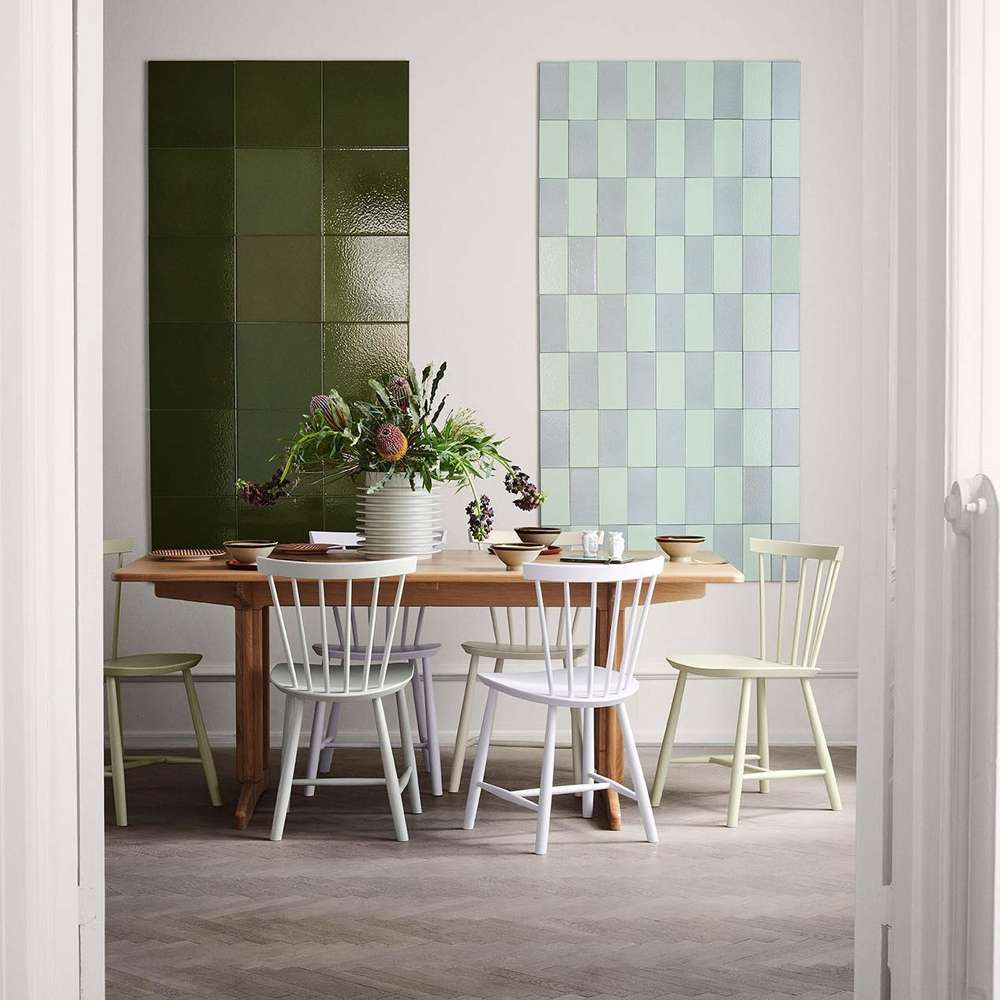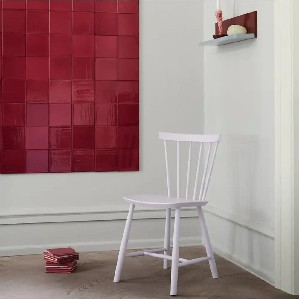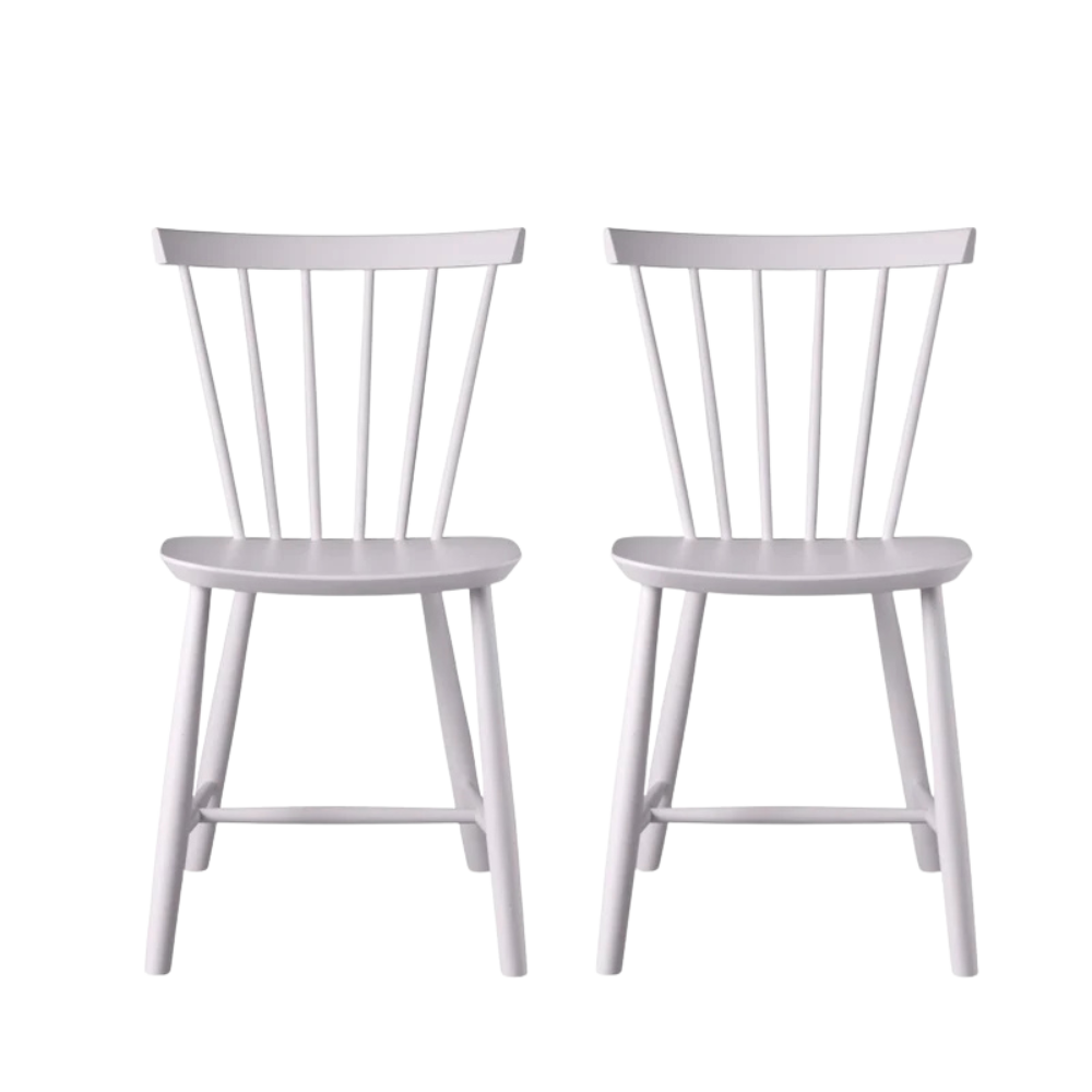 FDB J46 spisebordsstolen – et sæt med 2 stole – er en ikonisk stol med rødder i dansk designtradition, skabt af Poul M. Volther i 1950. Her får du den i malet bøgetræ – stadig med det karakteristiske lette formsprog og den v-formede ryg, som har gjort modellen elsket i generationer.