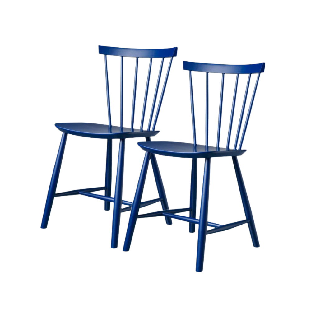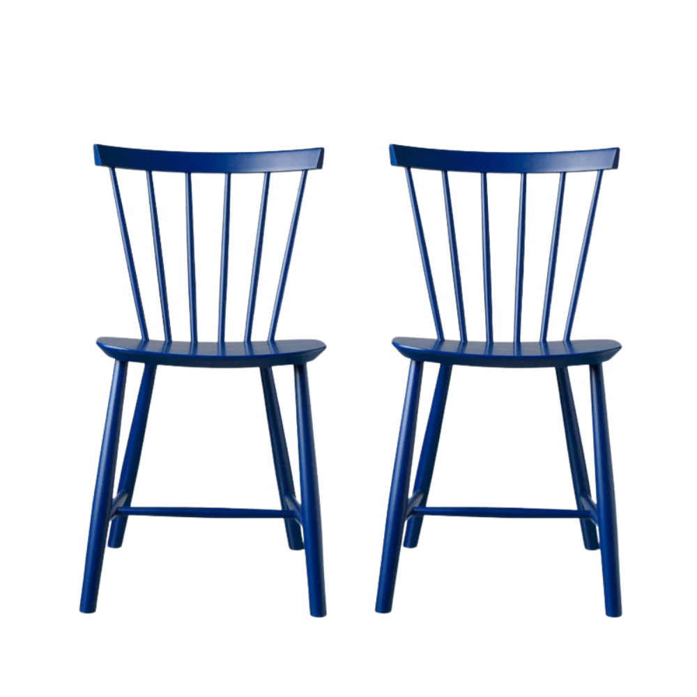 FDB J46 spisebordsstolen – et sæt med 2 stole – er en ikonisk stol med rødder i dansk designtradition, skabt af Poul M. Volther i 1950. Her får du den i malet bøgetræ – stadig med det karakteristiske lette formsprog og den v-formede ryg, som har gjort modellen elsket i generationer.