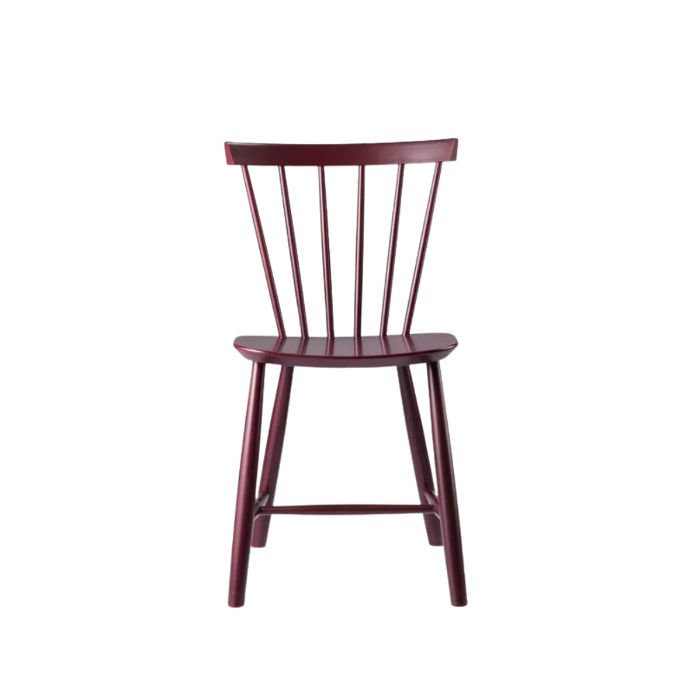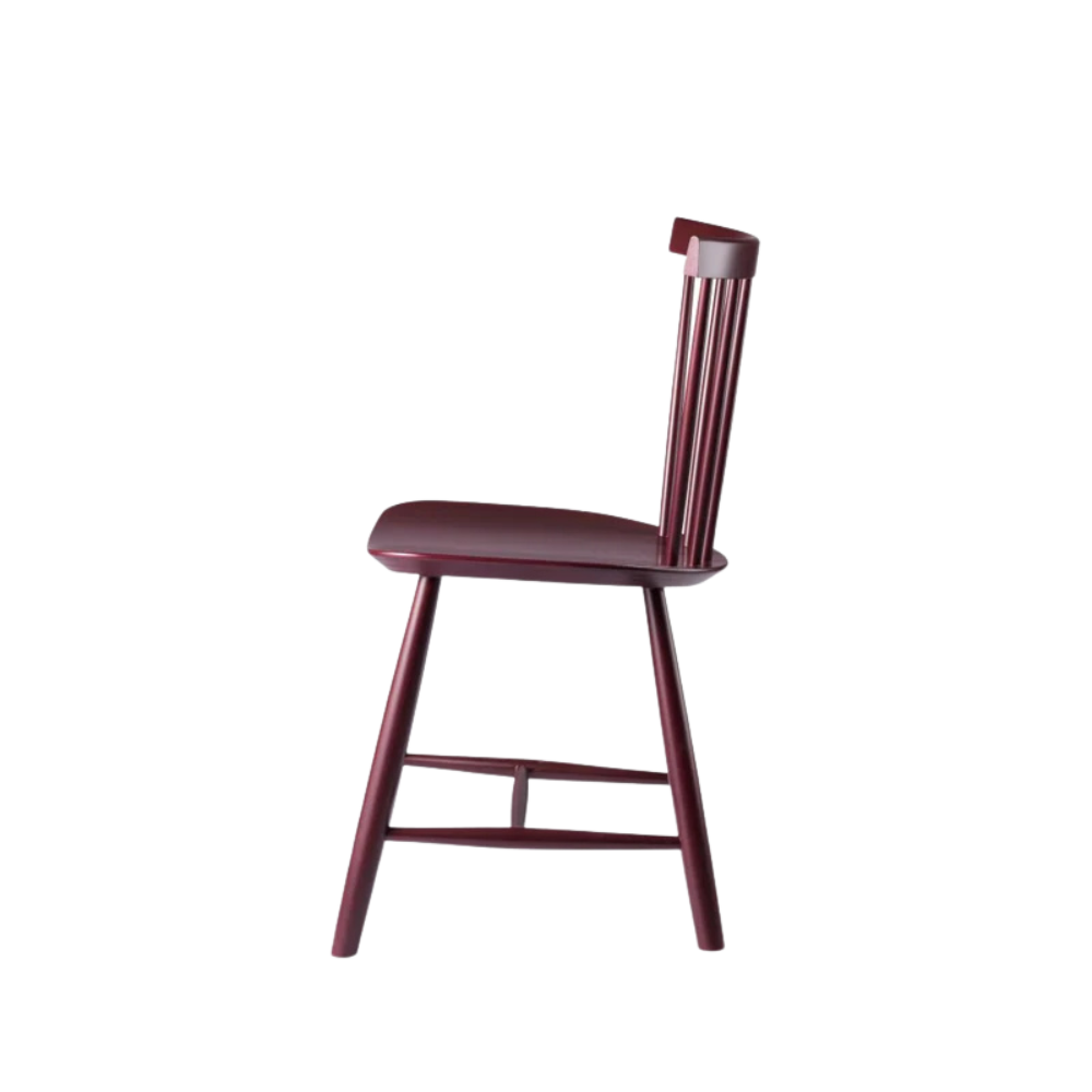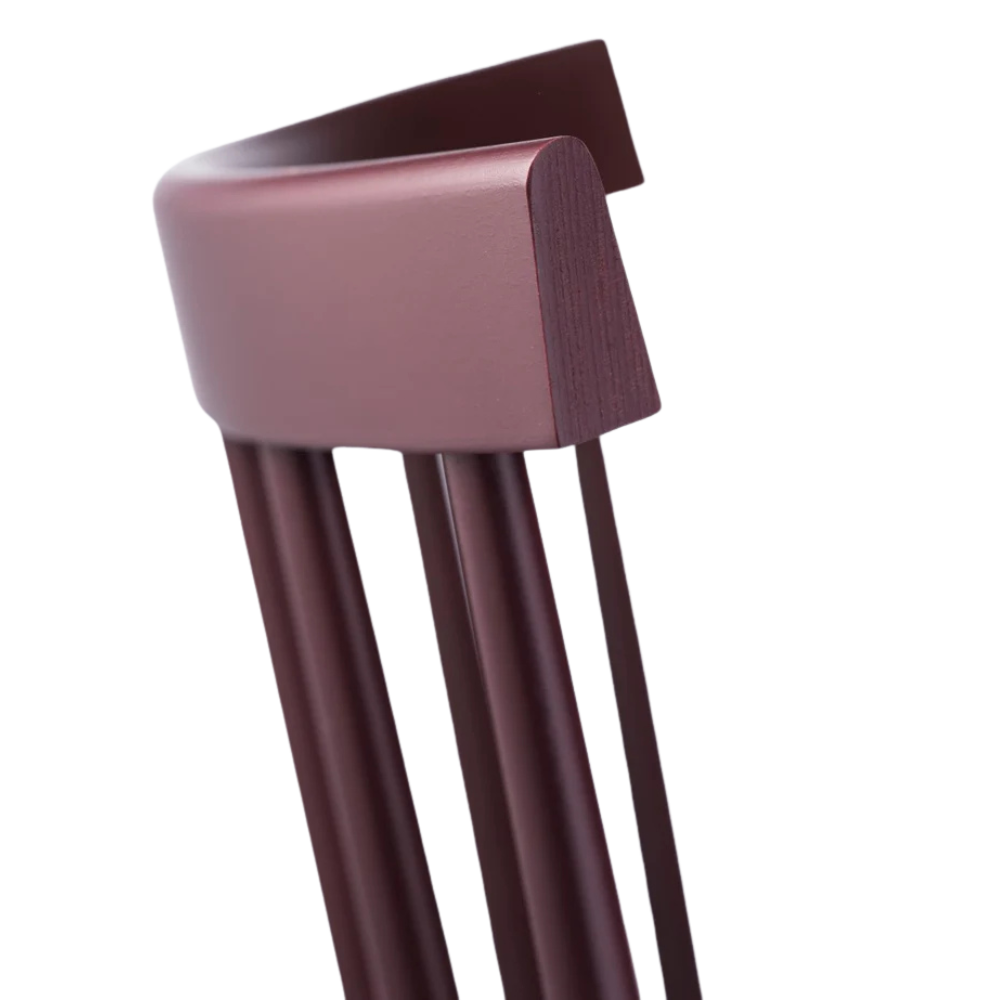 Denne version er fremstillet i FSC-certificeret bøg og malet med vandbaseret maling, som giver en moderne, ensartet finish. Den ikoniske ryglænsløsning med lodrette tremmer giver både støtte og luftighed, og konstruktionen gør stolen let at flytte og nem at stakke, når den ikke er i brug.