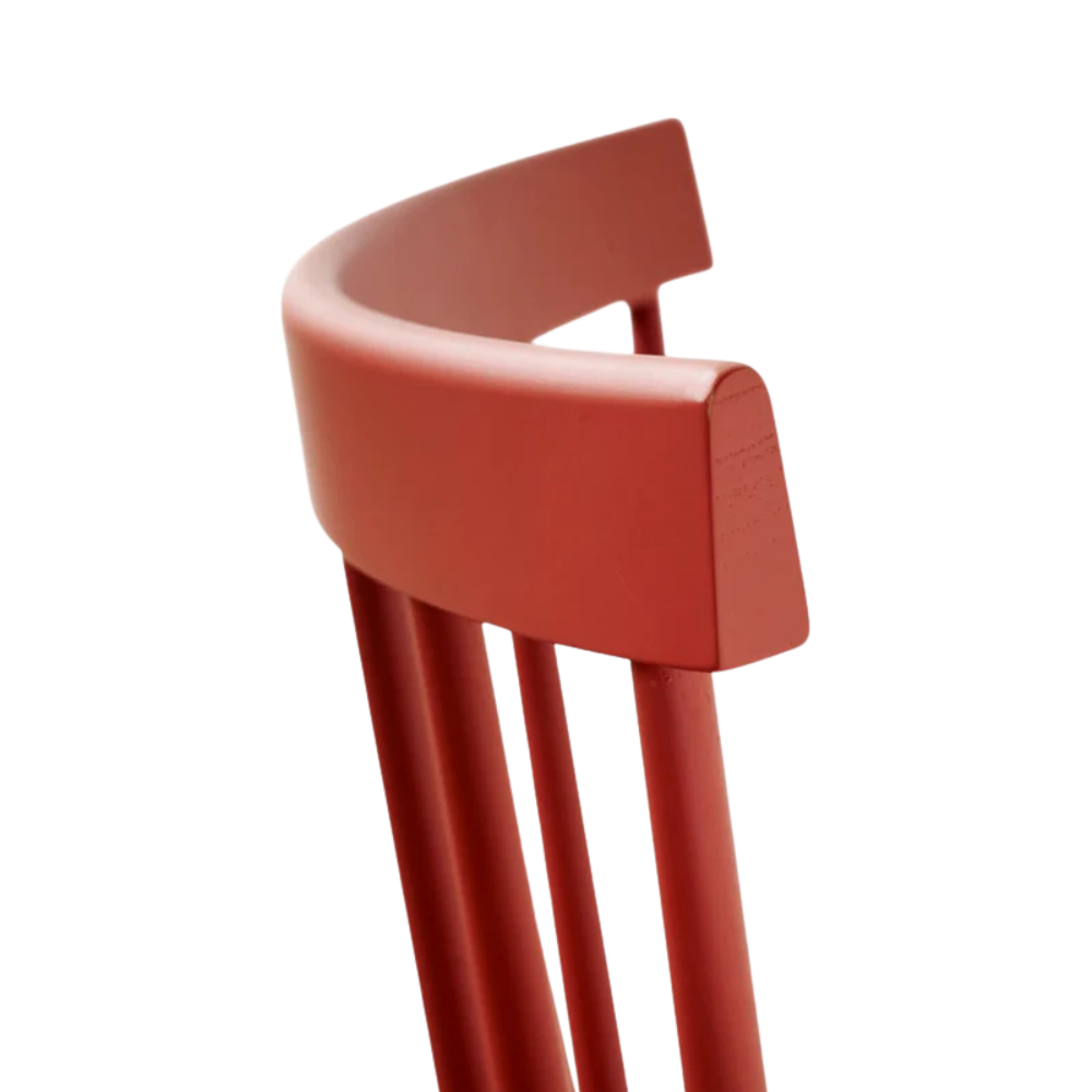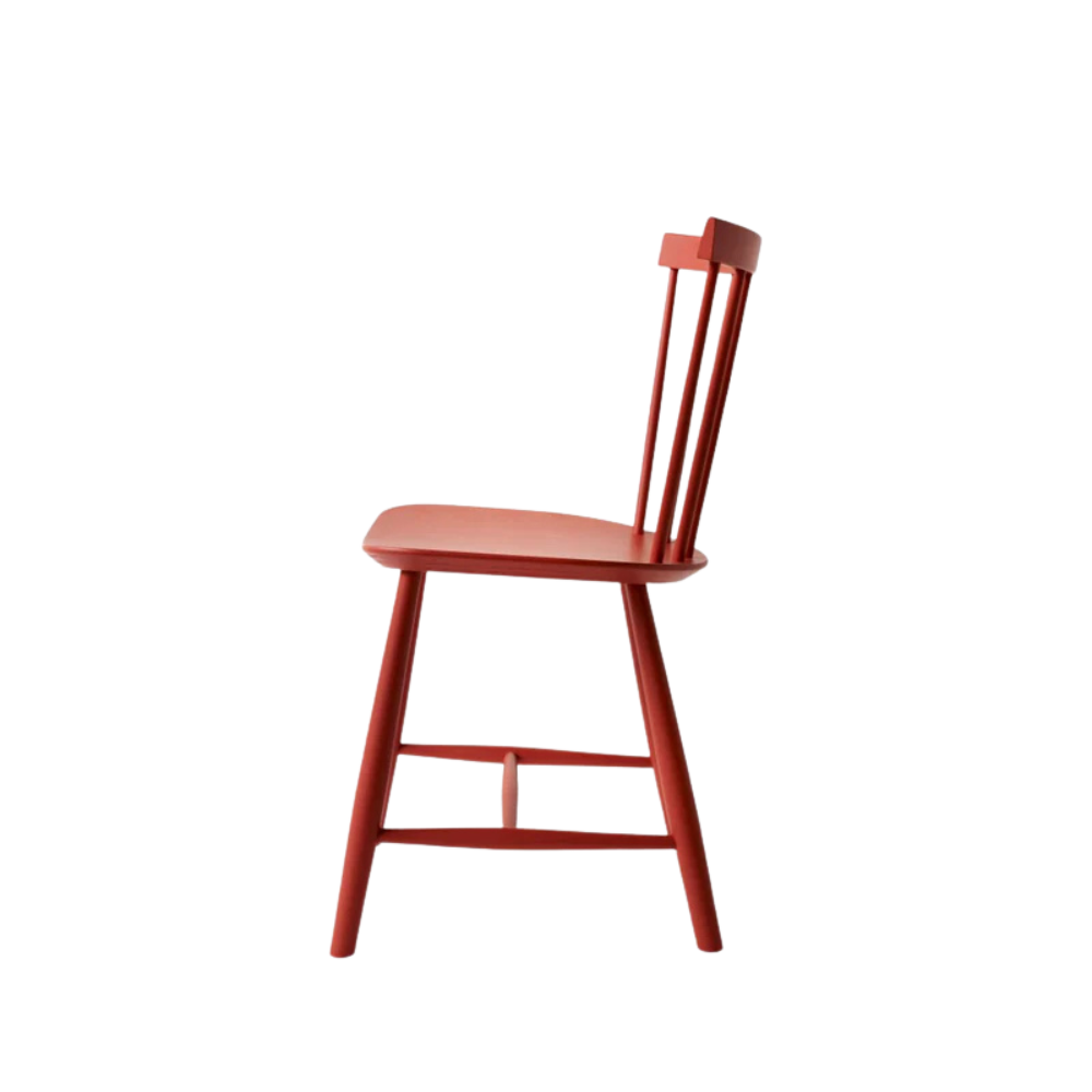 Denne udgave er malet i den varme røde nuance RAL 3016 – en farve, der giver energi og karakter til indretningen. Fremstillet i FSC-certificeret bøg med formpresset sæde, er stolen både robust, let og nem at flytte rundt på. Det klassiske design suppleres her af en farve, der giver nyt liv til det tidløse udtryk.