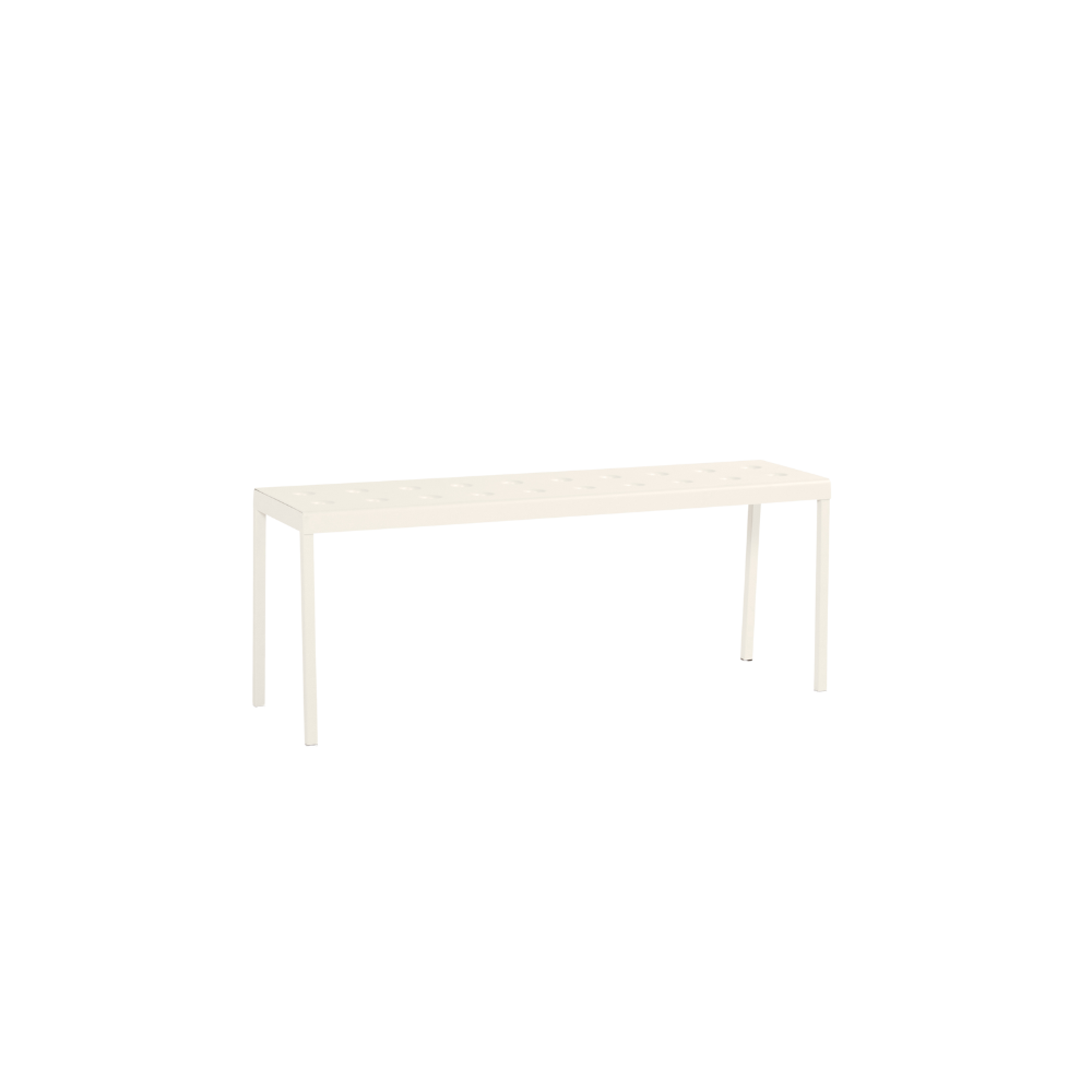 Balcony havebænk uden ryglæn fra HAY er et stilrent og alsidigt møbel til udendørs brug. Designet af Ronan og Erwan Bouroullec kombinerer funktion og æstetik i en lav bænk med grafiske perforeringer og enkle, slanke ben.
