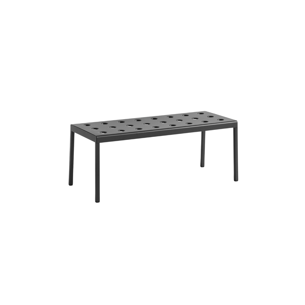 Det langstrakte HAY Balcony loungebord L96,5 er et alsidigt møbel, der passer perfekt som sidebord eller serveringsbord i dit uderum. Den slanke silhuet og perforerede overflade gør bordet både dekorativt og funktionelt.