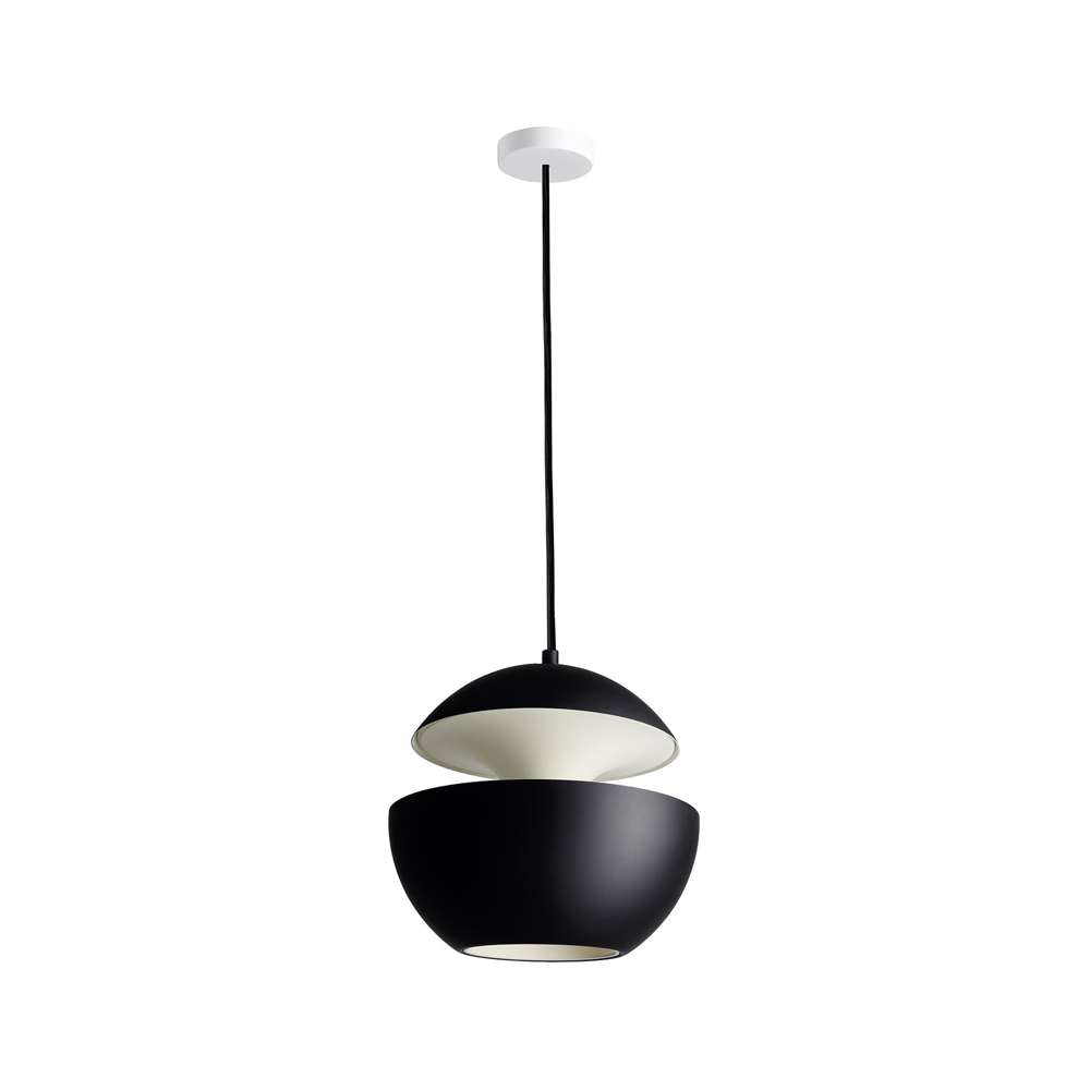 Aluminium pendant lamp. Inspired by the setting sun, it can be arranged alone or in a cluster and is available in several sizes and colours. At first glance, this original lamp looks like all the so-called original lamps. But when turned on, the Here Comes the Sun pendant lamp becomes magical. The night becomes gentle and reassuring.