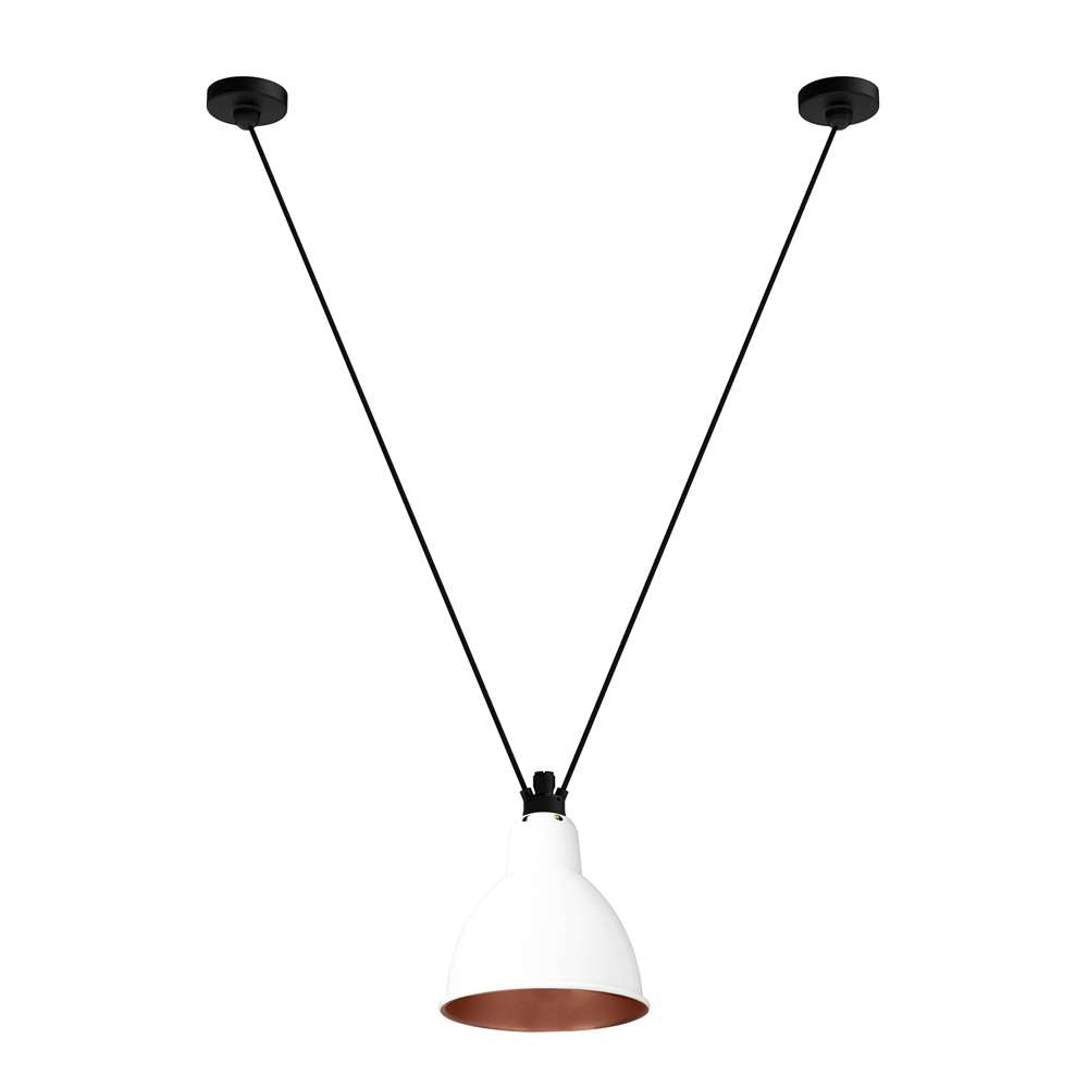 Pendant lamps in cast aluminium and textile cables. Les Acrobates de Gras perform various figures in the air, perched at a height of several metres. The spectacle is bold: in movement, rhythm and colour. The colours and shapes of the Gras reflectors and glass balls (sizes L, XL, Ø175 and Ø250) offer a dynamic and elegant display. Les Acrobates de Gras can be linked together. Each one can perform its number!
