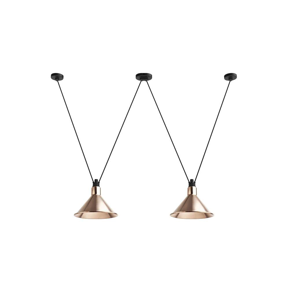 Pendant lamps in cast aluminium and textile cables. Les Acrobates de Gras perform various figures in the air, perched at a height of several metres. The spectacle is bold: in movement, rhythm and colour. The colours and shapes of the Gras reflectors and glass balls (sizes L, XL, Ø175 and Ø250) offer a dynamic and elegant display. Les Acrobates de Gras can be linked together. Each one can perform its number!