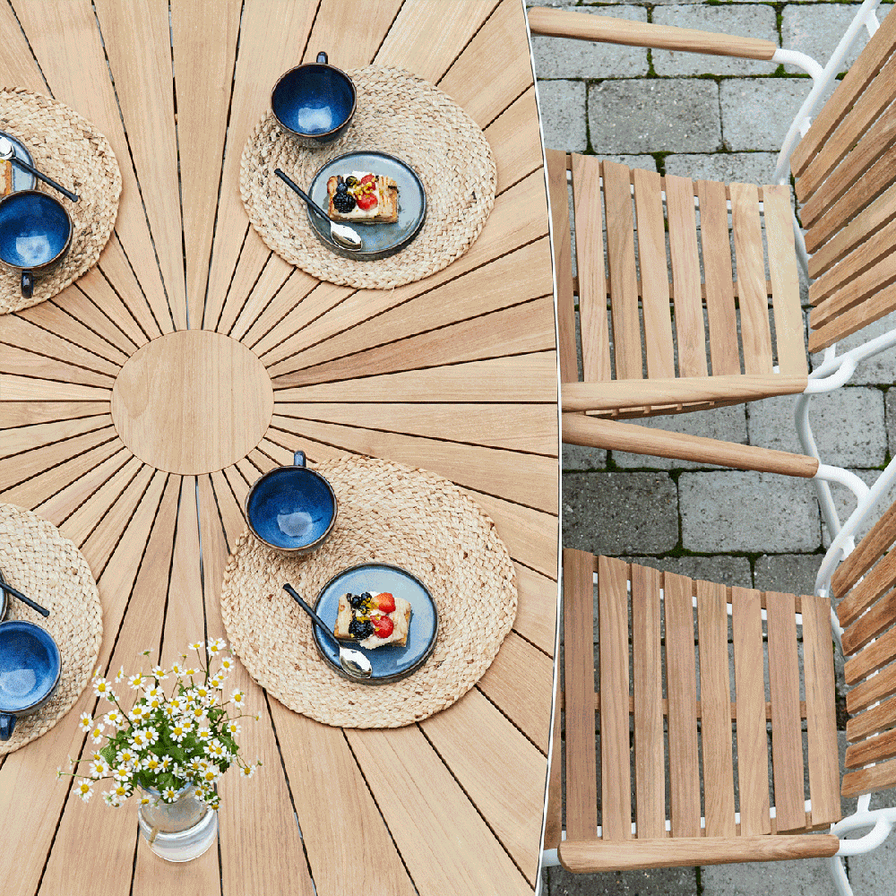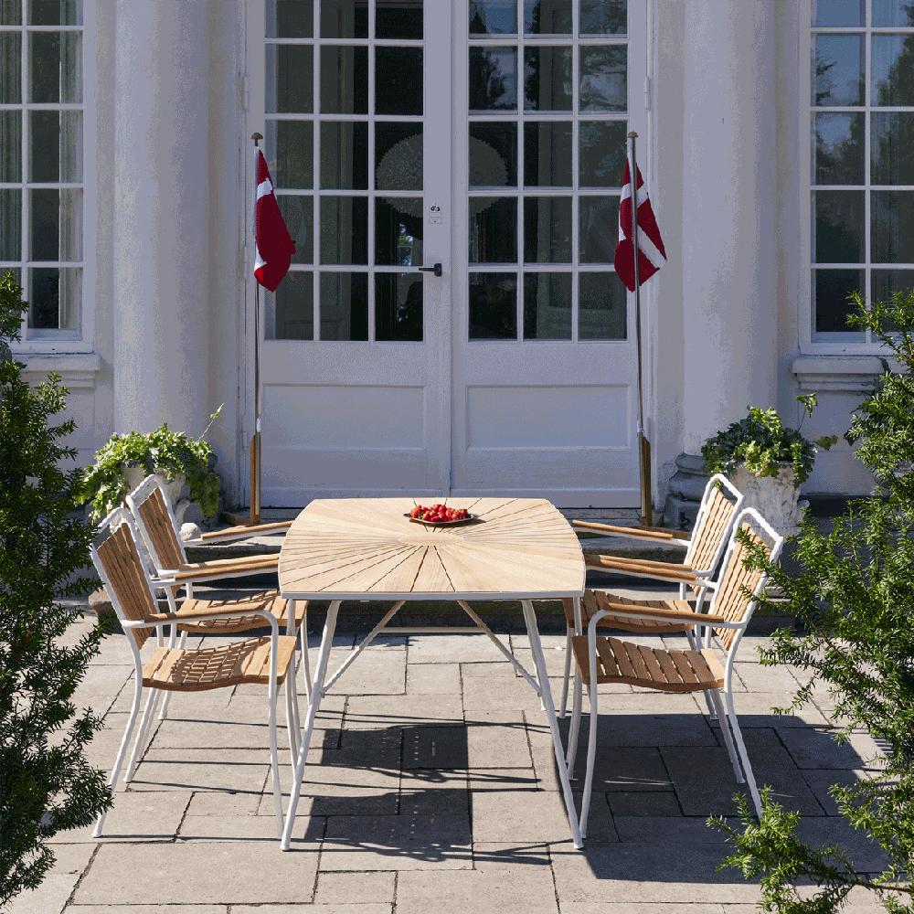 Dette smukke Marguerit sæt består af 1 x Marguerit havebord i hvid samt 4 x Marguerit havestole i hvid. Havebordet måler L144 x B90 x H72 cm og har bordplade i teak og stel i pulverlakeret aluminium. Marguerit havestolene har ergonomisk sæde og ryg. Stellet er i pulverlakeret aluminium. Sæde, ryg og armlæn er i højkvalitetsteak.
