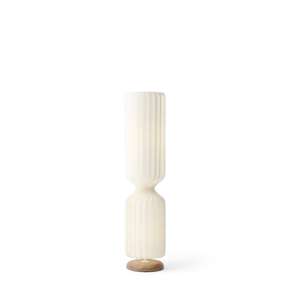 Smuk gulvlampe fra Tom Rossau. Denne skønne gulvlampe er en del af TR41 serien, som drager stærk inspiration fra Tom Rossaus populære lamper, TR7 og TR37. Dog tilbyder TR41 serien et helt nyt udtryk, da den velkendte cylinder er strammet op ved en forsnævring i toppen, bunden og midten, hvilket giver lampen en helt speciel timeglasfigur. Samtidigt har lampen en interessant asymmetri, da forsnævringen i midten er placeret i den nedre del af lampen. Lamperne i serien er lavet i et specielt materiale, som er kombineret af papir og plastik. Sammen skaber disse materialer en fin gennemsigtighed, høj kvalitet, og interessant struktur, hvilket giver en fuldendt, taktil oplevelse. Brug den skønne gulvlampe i stuen, værelset, entréen eller hvor den ellers passer ind. Uanset hvor lampen placeres, vil den tilføje en yndefuld og unik detalje til indretningen.