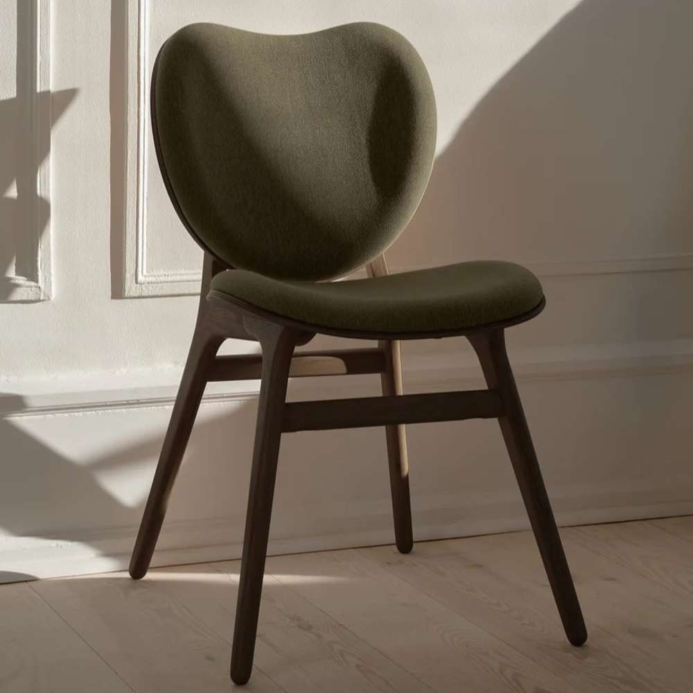 Umage A Conversation Piece spisebordsstol i mørk eg er et sofistikeret møbelvalg, der forener organisk design med førsteklasses komfort. Den skulpturelle ramme i mørkbejdset massiv eg og egefiner skaber en varm og eksklusiv stemning, mens polstringen i genanvendt polyester gør stolen både bæredygtig og behagelig.