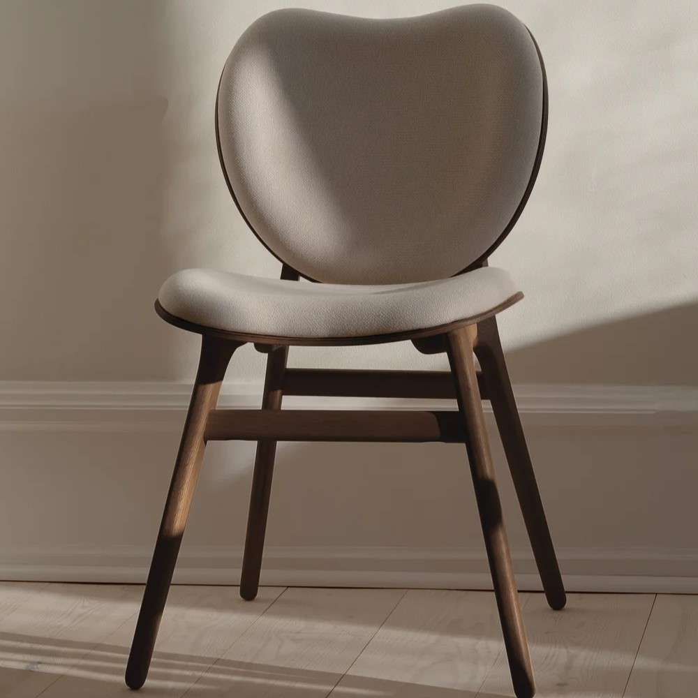 Umage A Conversation Piece spisebordsstol i mørk eg er et sofistikeret møbelvalg, der forener organisk design med førsteklasses komfort. Den skulpturelle ramme i mørkbejdset massiv eg og egefiner skaber en varm og eksklusiv stemning, mens polstringen i genanvendt polyester gør stolen både bæredygtig og behagelig.
