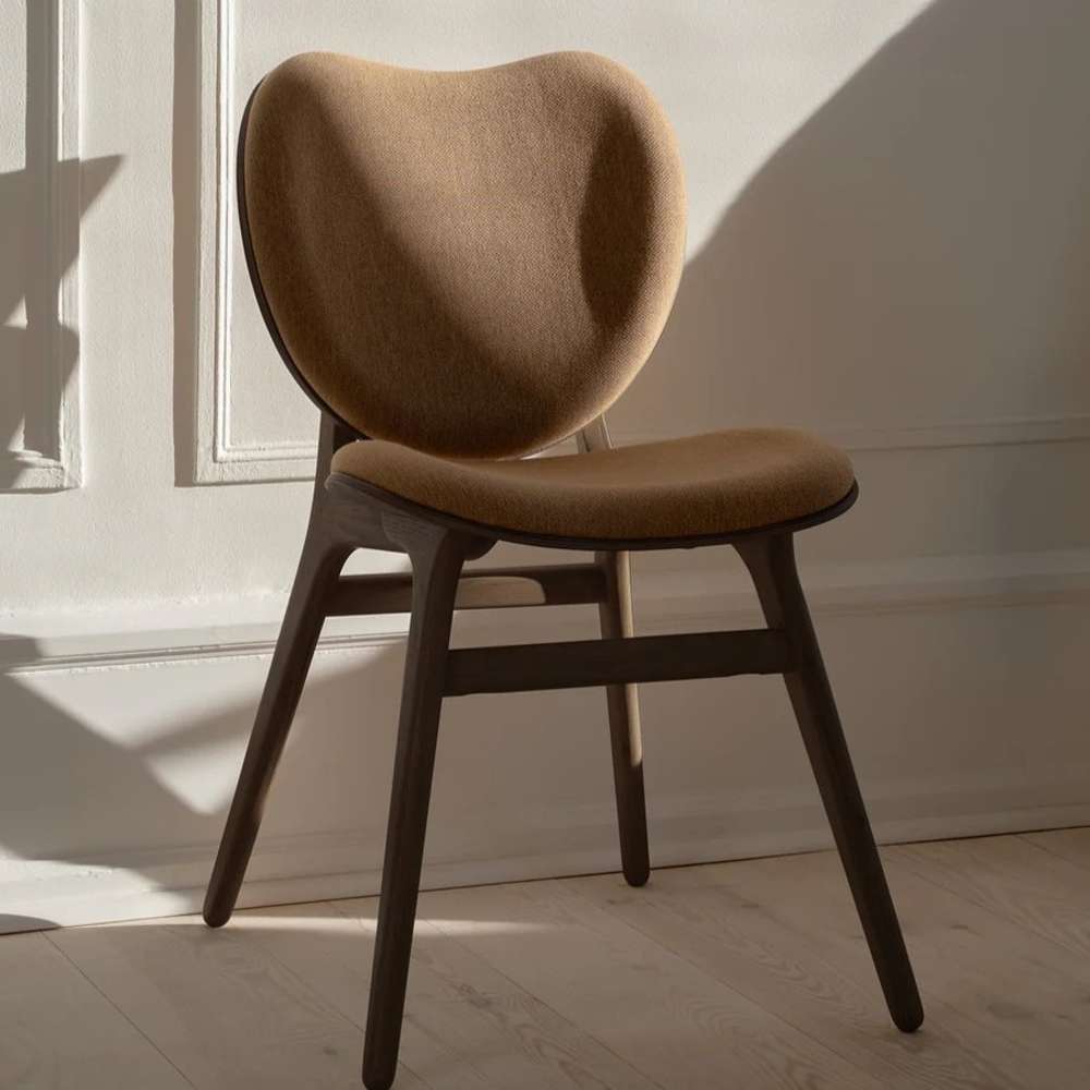 Umage A Conversation Piece spisebordsstol i mørk eg er et sofistikeret møbelvalg, der forener organisk design med førsteklasses komfort. Den skulpturelle ramme i mørkbejdset massiv eg og egefiner skaber en varm og eksklusiv stemning, mens polstringen i genanvendt polyester gør stolen både bæredygtig og behagelig.