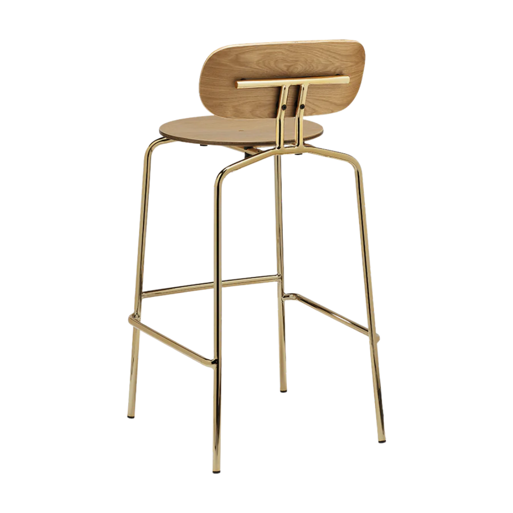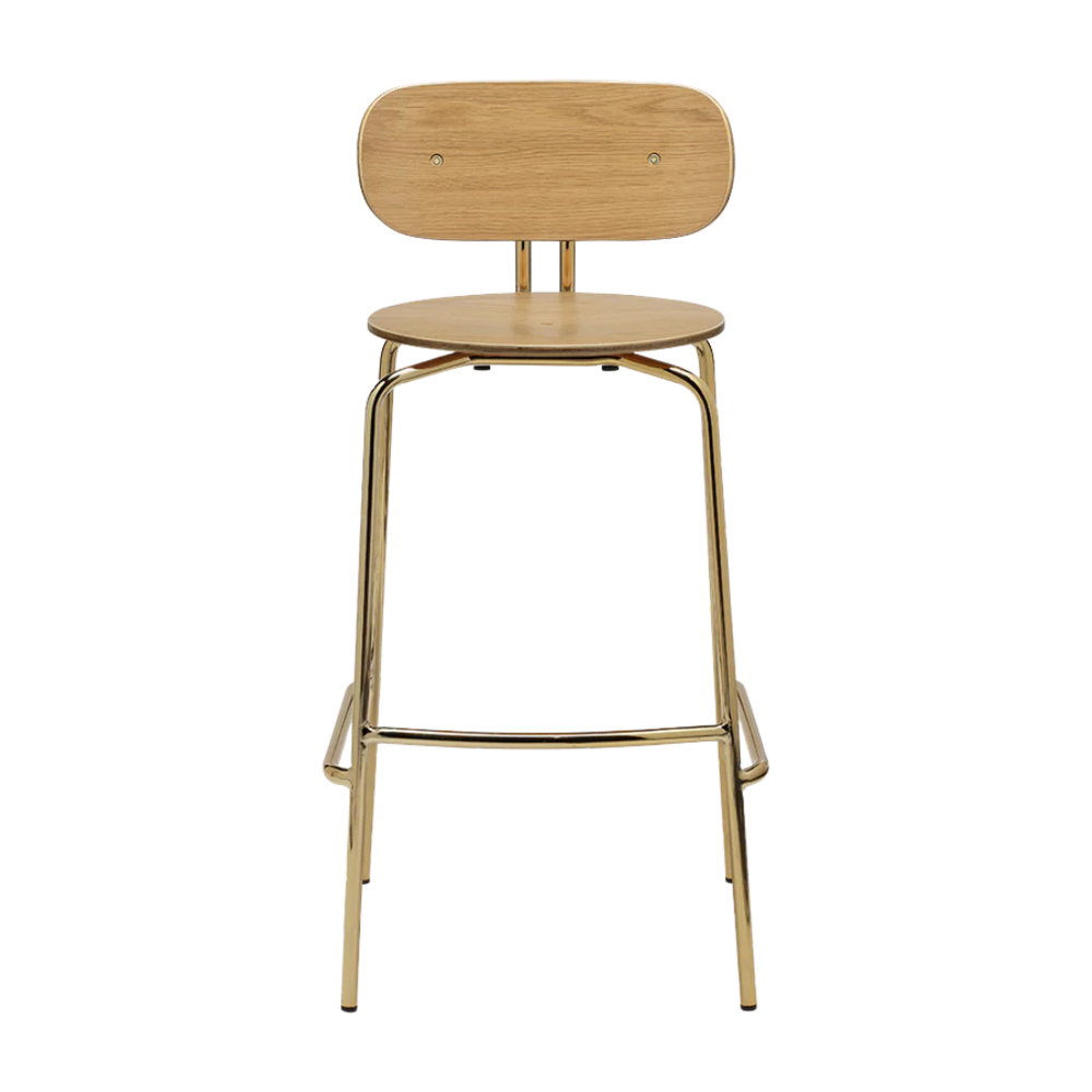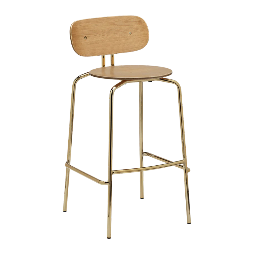 Det slanke messingstel giver stolen stabilitet og karakter, mens egefinerens varme finish skaber en indbydende kontrast. Med en siddehøjde på 75 cm passer Curious perfekt til højere borde og barløsninger.