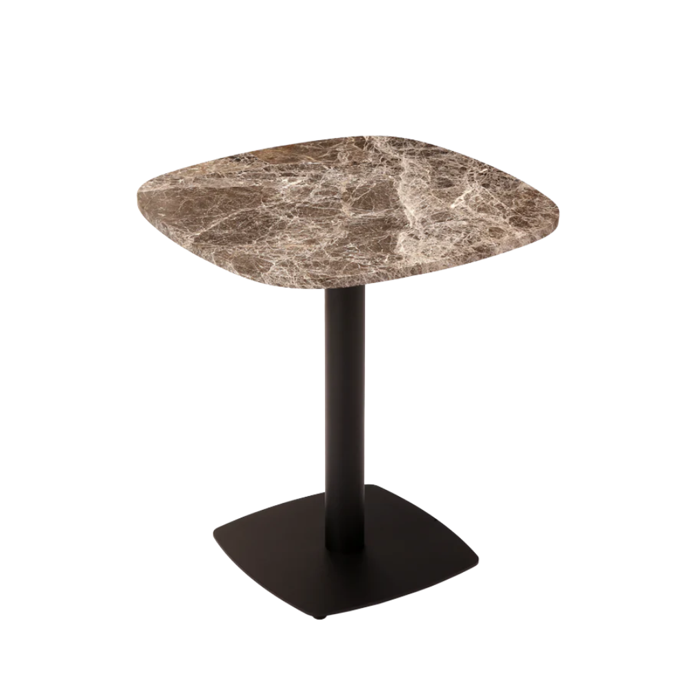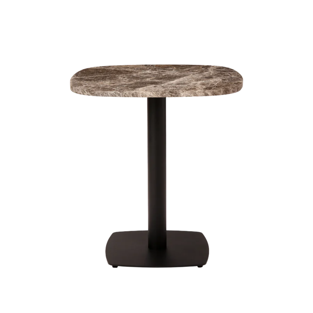 UMAGE Gather cafebord kombinerer æstetik og funktion i en minimalistisk helhed. Med sin runde bordplade i travertin og sit fine stel i pulverlakeret stål, fremstår bordet både let og solidt på én gang. Det naturlige mønster i stenen sikrer, at hvert bord er unikt – en smuk kontrast til det stramme, industrielle stel.