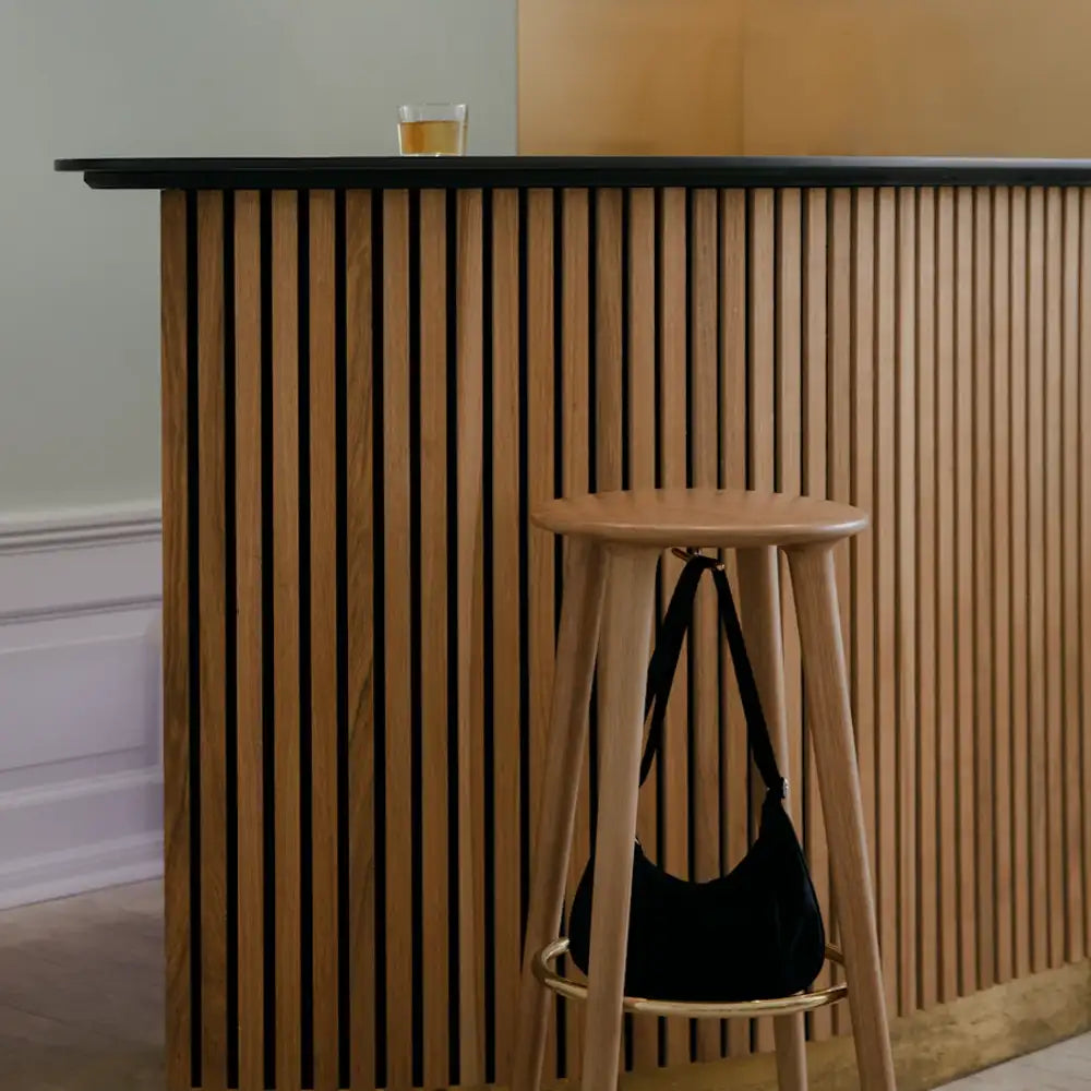 Umage The Socialite Barstol i massiv eg er et elegant bud på et møbel, der både løfter og samler hjemmets sociale rum. Med sin høje siddehøjde og sin enkle, organiske formgivning passer den perfekt ved barbordet eller det åbne køkkenmiljø.