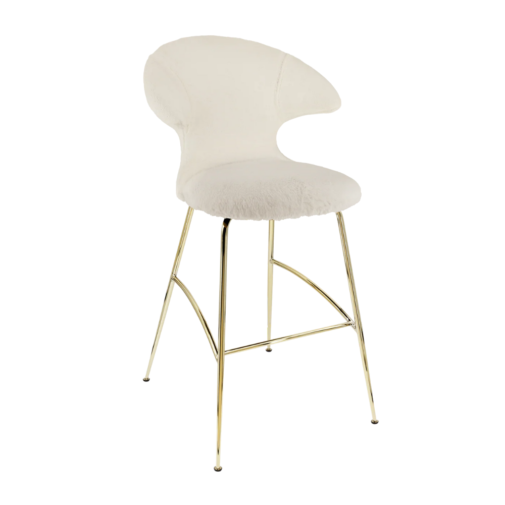 Time Flies barstolen fra Umage kombinerer moderne elegance med høj komfort. Med stel i varm messing og polstring i blød Teddy polyester får du en barstol, der både er stilfuld og indbydende.