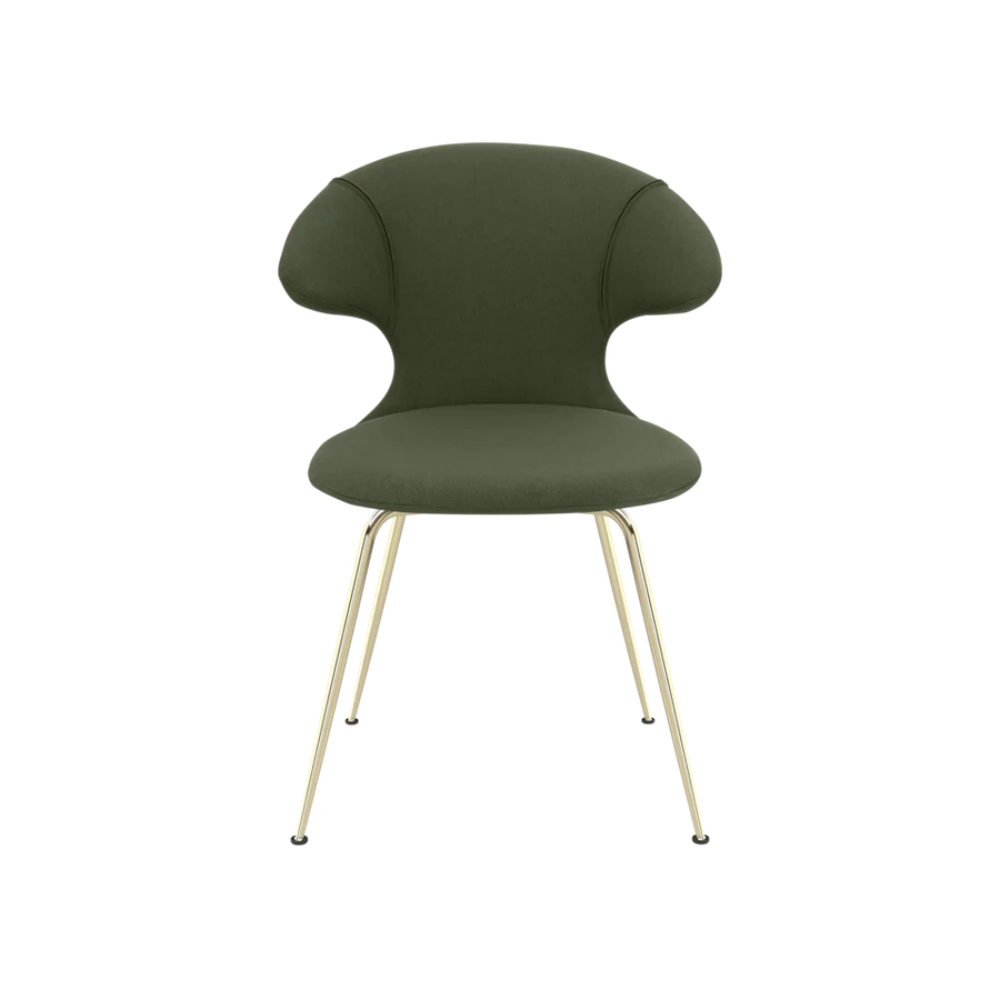Umage Time Flies spisebordsstol kombinerer elegance og ansvarlighed på fineste vis. Med et stel i varm messing og polstring i genanvendt polyester får du både æstetik og bæredygtighed – uden kompromis.