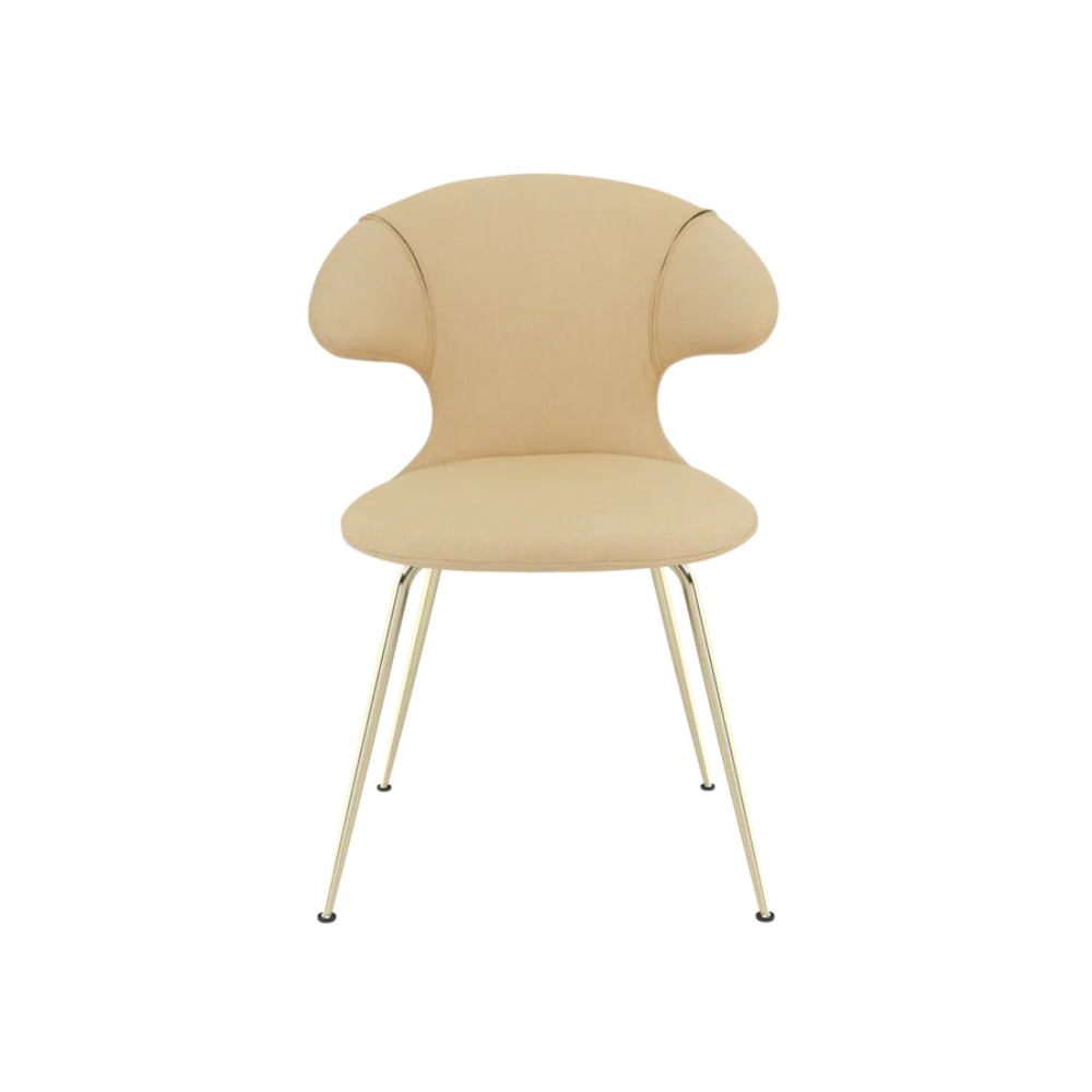 Umage Time Flies spisebordsstol kombinerer elegance og ansvarlighed på fineste vis. Med et stel i varm messing og polstring i genanvendt polyester får du både æstetik og bæredygtighed – uden kompromis.